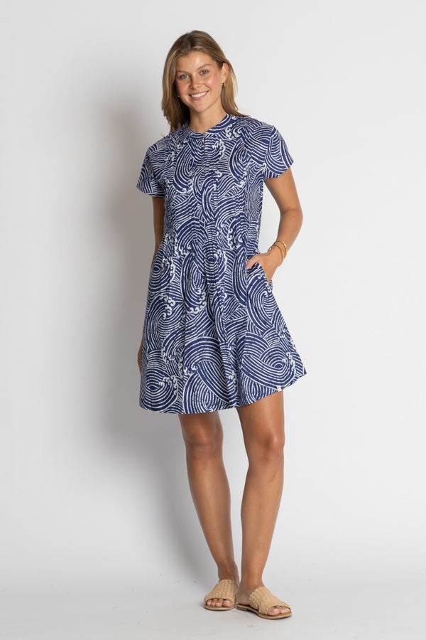 The IBSA Casper Dress combines comfort and style in one versatile piece. Crafted from 100% cotton, this relaxed-fit dress features a Nauru collar with a flattering V-neck and vertical tucks from the bodice to the waist, creating a subtle tailored look. Short sleeves and a curved hem add to its casual sophistication, while practical side pockets bring functionality to everyday wear. Perfect for work, weekend outings, or relaxed summer days, this dress is a must-have for a modern, effortless wardrobe. Relaxed fit Nauru collar with V-neck Vertical tucks on bodice to waist Side pockets Short sleeve Curved hem 100% cotton Designed in Australia