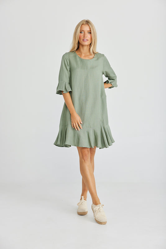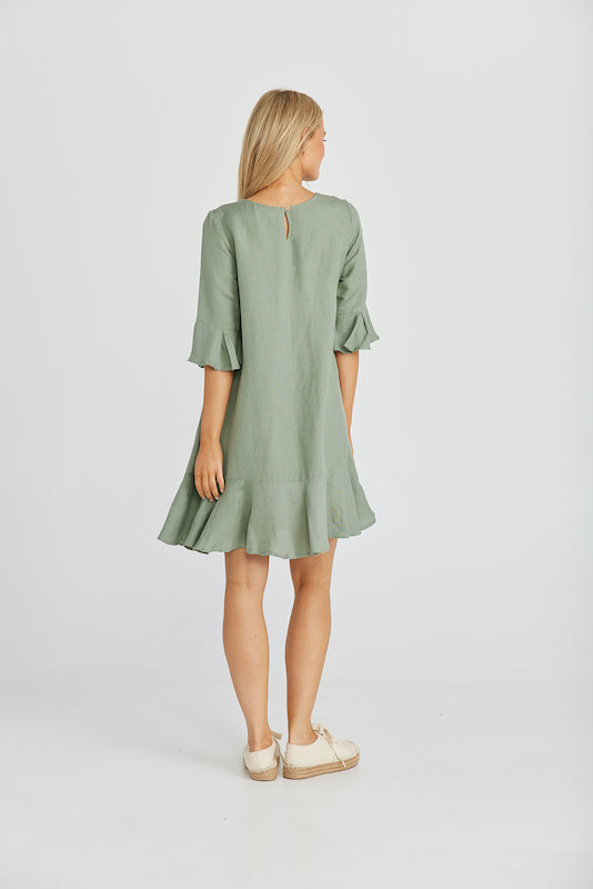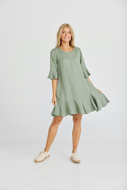 * KNEE LENGTH * LOOSE FIT * HALF LENGTH SLEEVES WITH FLOUNCE * FLOUNCE HEMLINE * KEYHOLE OPENING AT BACK NECKLINE 55% LINEN 45% VISCOSE