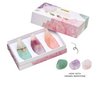 New! Indulge in crystal-inspired self-care with our Crystal Soap Trio, featuring Aquamarine, Rose Quartz, and Amethyst soaps—each with a hidden gemstone inside! HOW TO USE: Choose a soap that aligns with your needs—Rose Quartz for love, Amethyst for relaxation, or Aquamarine for healing. Hold the soap under warm water to create a lather, then set an intention for your ritual. Gently massage the soap onto your skin, cleansing both body and energy. Breathe deeply, envisioning the crystal's positive qualities infusing you. Rinse with warm water, releasing negative energy. ROSE QUARTZ SOAP INGREDIENTS: Aqua, Sorbitol, Sucrose, Sunflower Oil, Glycerine, Stearic Acid, Coconut Oil, Jasmine Essential Oil, Propylene Glycol, Orange 4 (Cl 15510), Bronze Powder (Cl7740000). AMETHYST SOAP INGREDIENTS: Aqua, Sorbitol, Sucrose, Sunflower Oil, Glycerine, Stearic Acid, Coconut Oil, Lavender Essential Oil, Propylene Glycol (food grade), Violet 2 (Cl 60725), Bronze Powder (Cl7740000). AQUAMARINE SOAP INGREDIENTS: Aqua, Sorbitol, Sucrose, Sunflower Oil, Glycerine, Stearic Acid, Coconut Oil, Lemongrass Essential Oil, Propylene Glycol (food grade), Blue 4 (Cl 42090), Bronze Powder (Cl 77400).