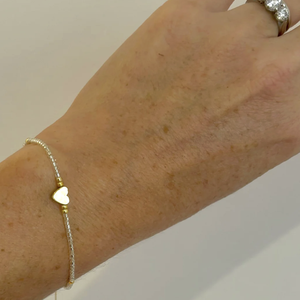 The delicate gold plated heart for the delicate statement you can wear everyday. Wear your Hearts forever bracelet on its own or layered. Handmade with the highest quality Japanese Miyuki beads & the softest of silk thread Every bracelet comes packaged in its very own gift bag