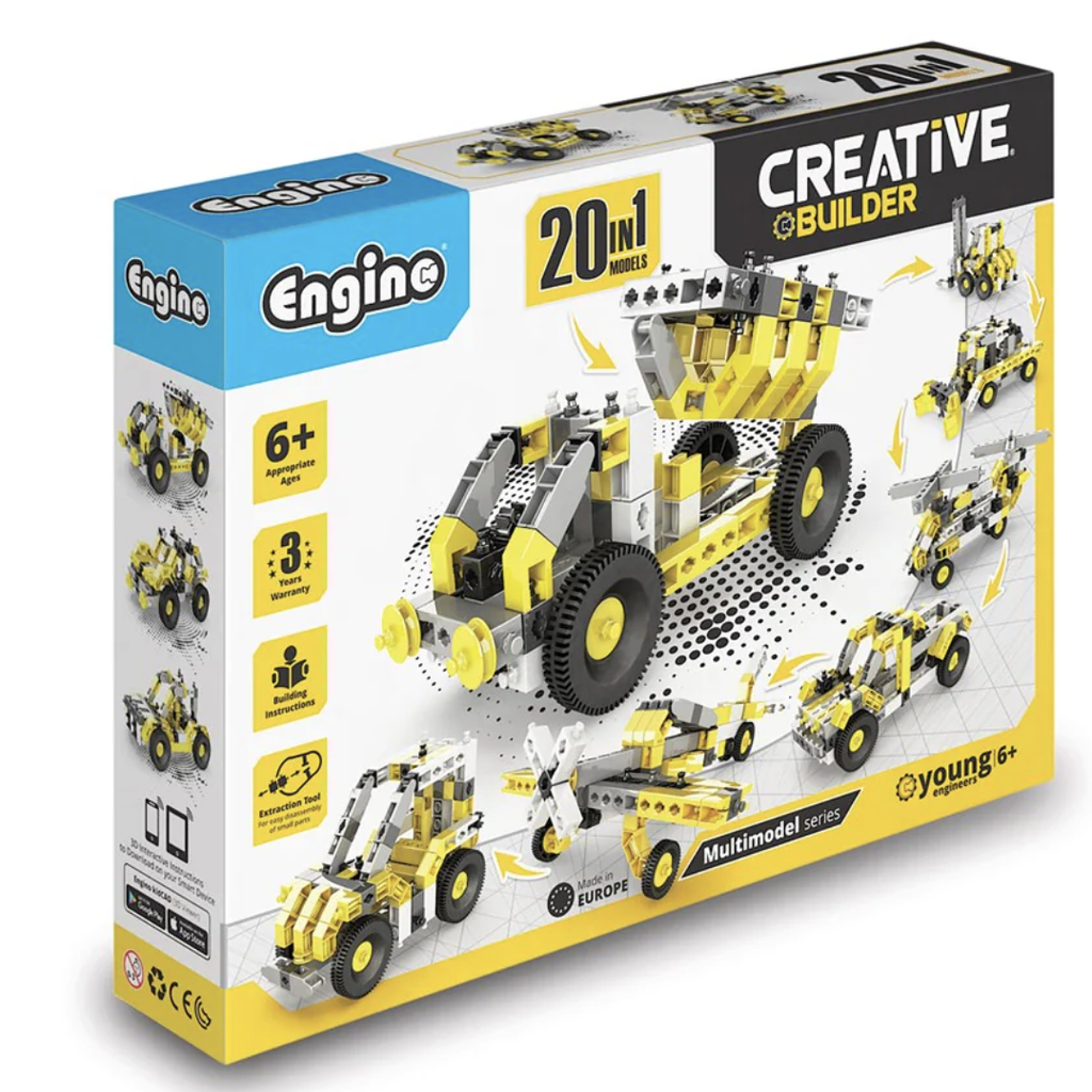 This multiple model engineering toy, will take a child's creativity to a different dimension. A great model kit for beginners to discover and get an interest in STEM through its creative building element. The new CREATIVE BUILDER - Multimodel series, is the latest upgrade of the very successful 2017 INVENTOR line, which brings out the best of ENGINO : the ability to build fast and easy as many models as possible! The classic building system is deployed, which makes the sets suitable for 6 year olds, providing a stepping stone between the Qboidz and the Mechanics lines. Creativity development is the main focus of this series, starting from a 10 models set all the way to 120 models! All our sets from 30 models and above include the ENGINO new 2-speed motor for animated builds, from cars to cranes to dinosaurs and helicopters. The only limit is the imagination of the child! Number of parts included in pack: 127 For Ages 6yrs+