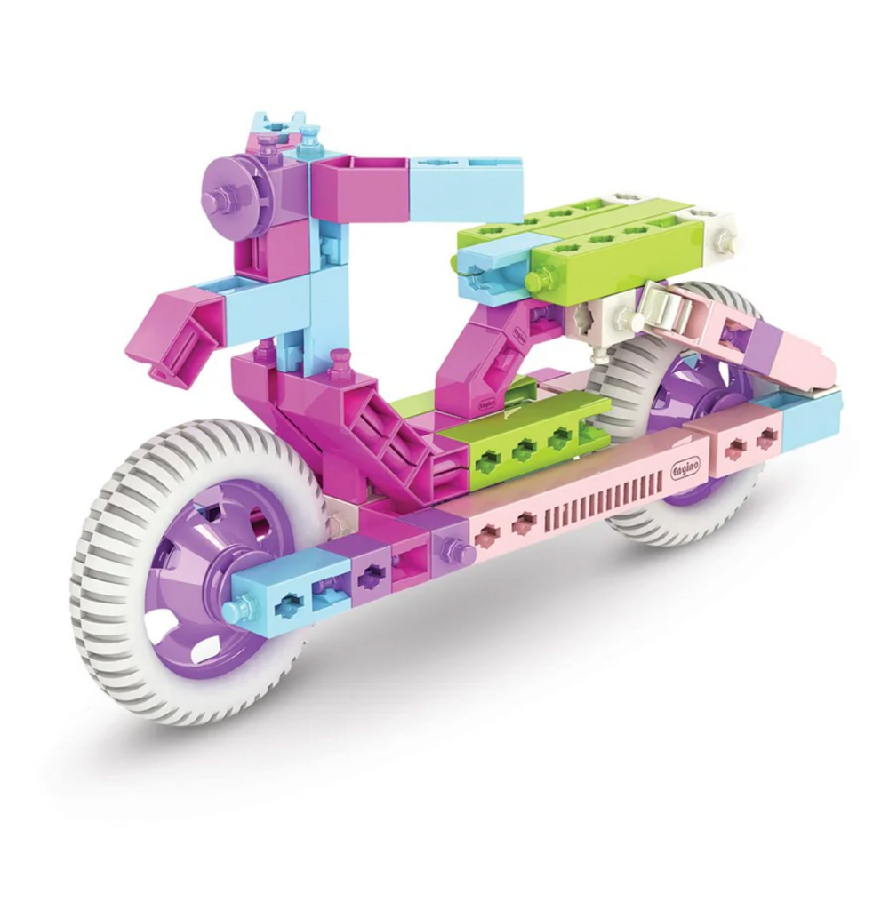 The world needs more women engineers, and Engino is doing something about it. We’re inspiring inventor girls everywhere to take their first steps in STEM (Science, Technology, Engineering and Math) with Inventor Girl, a science toy specially designed to unleash creativity and develop engineering skills all young inventor girls need to become tomorrow’s tech innovators. This Inventor Girl set includes print and online instructions to build 25 fun, colourful models. Inventor Series Our popular Inventor Series was specially designed to guide curious young learners on their first steps up the ladder of STEM (Science, Technology, Engineering and Math) discovery. Each Inventor Girl kit is a theme-based engineering adventure where inventor girls learn critical engineering skills, like how to think and build in 3D space and how to find creative solutions to real-world engineering problems. Patented snap-fit connectivity and multidirectional pivots let children build in any direction and at any angle Fully compatible with all Engino products for hours of freestyle creative play Build up to 25 working models with extra online instructions Easy-to-follow building instructions make assembly fun and quick Extraction tool for super-fast taking apart Interactive 3D building app for desktop lets inventor girls build in virtual space Environmentally friendly, toxin-free plastic is made to last, guaranteeing years of play Engino STEM toys were designed as a comprehensive STEM solution for use both at home and in the classroom. Number of parts included in pack: 107 For ages 6-12 years