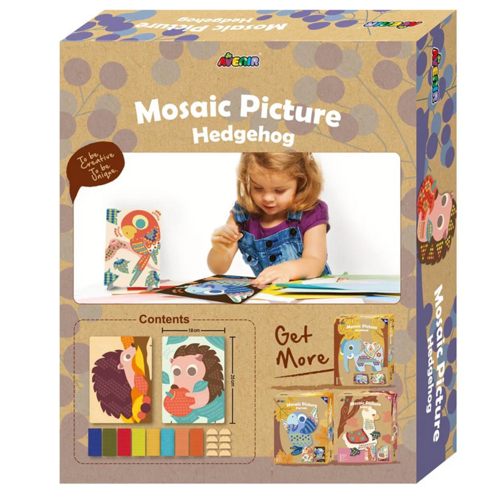 Create beautiful mosaic pictures of hedgehogs with this wonderful beginners kit. Kit includes: 2 thick stock cards, EVA coloured stickers and set of instructions. Keep the artwork and display using the display stands included. Ages 5+