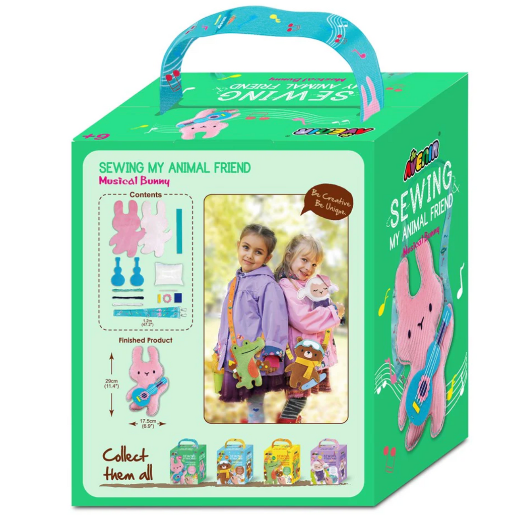 Our Sewing My Animal Friends create a safe, warm, creative activity for children and fulfil Avenir's intention to encourage diversity and individuality in children everywhere. This gorgeous Musical Bunny can be a fashion accessory, a doll to sleep with and cuddle or used as a charm. Using a soft and stylish corduroy material, the pre-punched fabric is easy to sew. Includes fabric stickers, a safety needle and an adjustable shoulder strap. Children will love to take their new best friend out with them anywhere, anytime, any place! For children aged 6 years +.