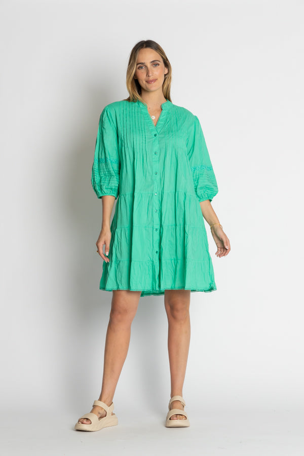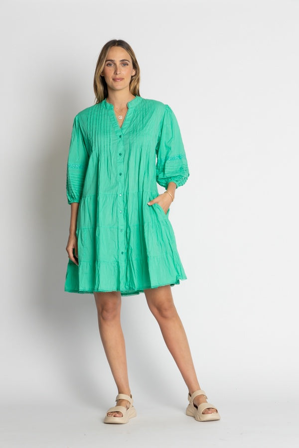 Embrace laid-back elegance with the LulaLife Celeste Dress, crafted from soft, breathable 100% cotton voile. Designed in Australia, this timeless piece offers a relaxed fit that moves beautifully with you — perfect for warm days or easy weekends. Featuring a flattering V-neckline, button-through front, and vertical tuck detailing, the Celeste Dress blends comfort with sophistication. The ¾ length elastic sleeves and knee-length hemline make it ideal for everyday wear, while side pockets add a practical touch. Lightweight and effortlessly chic, this is your go-to dress for travel, casual lunches, or coastal getaways. Relaxed fit V neck with band and placket Buttoned through to hem Vertical tucks to waist on front and back bodice ¾ length sleeve with elastic Tuck detail above sleeve hem Gathered tiers Side pockets Knee length 100% cotton voile Designed in Australia
