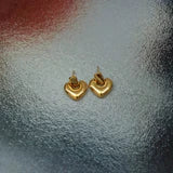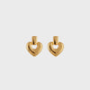 The Harmony Earrings by Zahar feature a contemporary heart design with a clean and elegant finish. They are versatile and suitable for both everyday wear and special occasions. Materials: 18K gold plated brass (nickel free), stainless steel earring posts Drop length: 2.2cm, width: 1.8cm